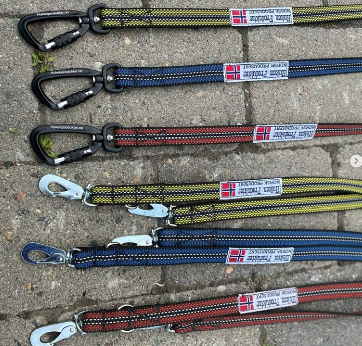 Huken Produkter tilbyr antigli kobbel, designet for å gi hundeeiere et sikkert og komfortabelt grep under turer. Disse kobblene er laget av 20 mm bredt bånd og er tilgjengelige i flere lengder og farger: