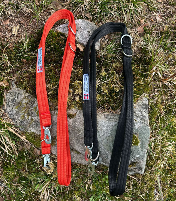Kobbelet har kroker i begge ender og flere ringer for justeringer. Røde er bredde 25 mm – sort er bredde 19 mm. Lengde 2 meter.