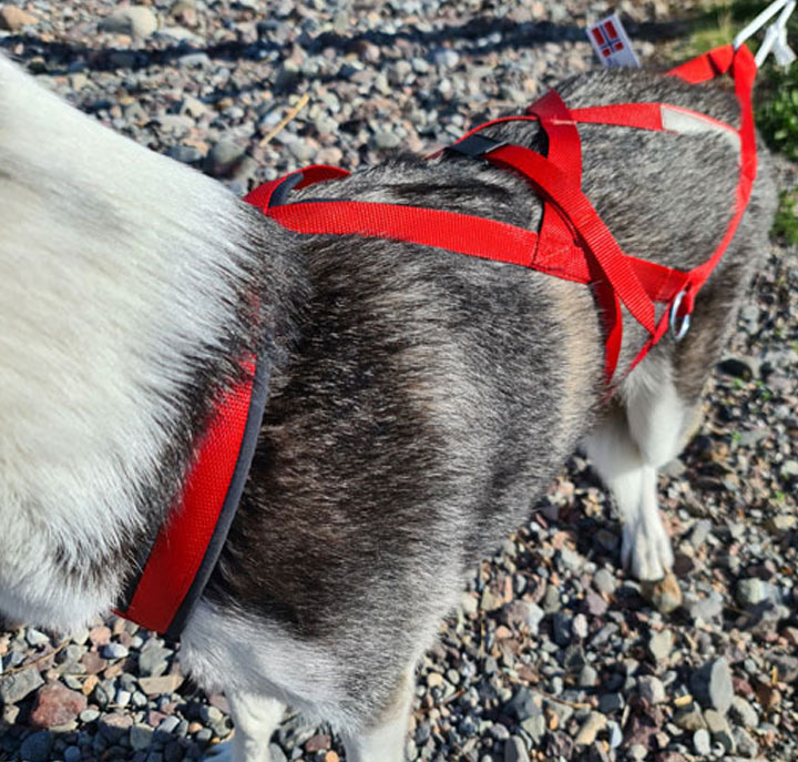 Huken Polstret Kombi Nomesele er en allsidig og robust hundesele, spesielt designet for aktiviteter som snørekjøring, jogging og hundekjøring. Den er polstret for å gi optimal komfort for hunden, med polstring som strekker seg godt bakover og rundt hele stolpen.